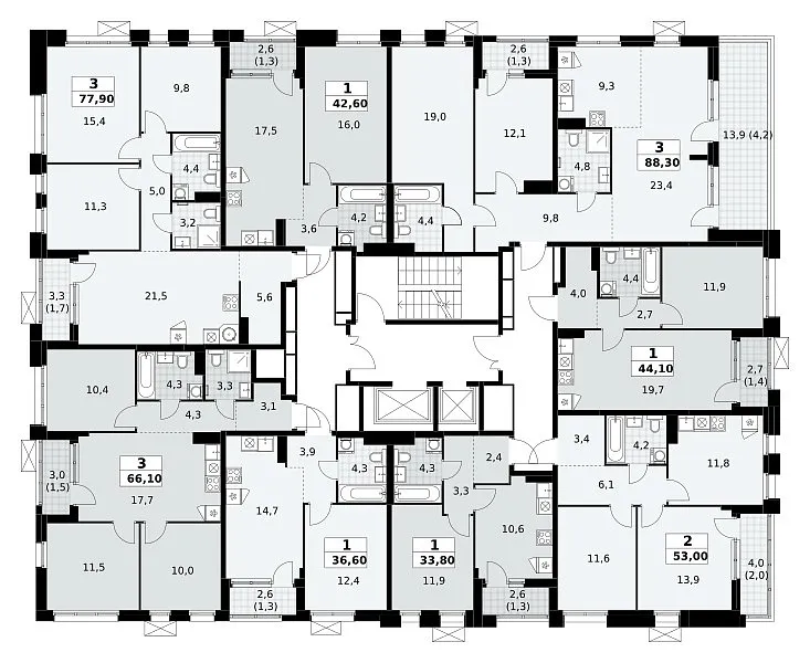 Площадь (общ/жил/кух), м2: 96.9/—/26.1