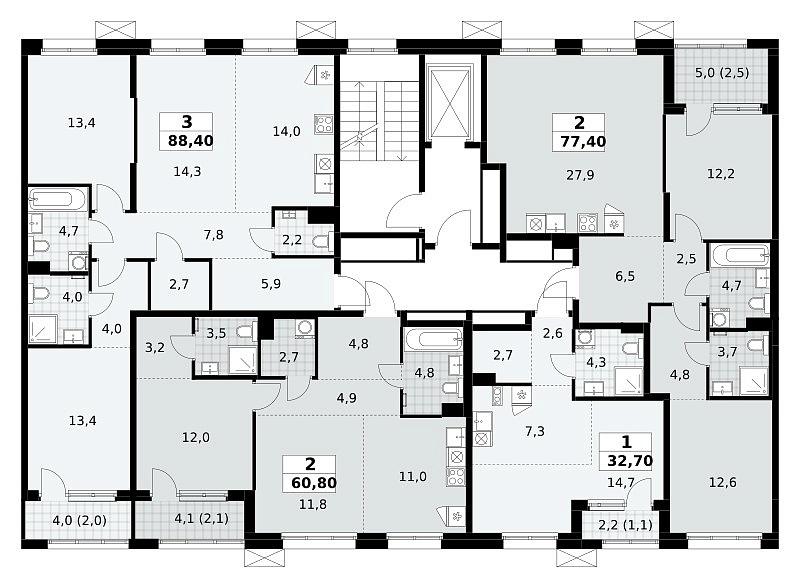 Площадь (общ/жил/кух), м2: 88.4/—/14