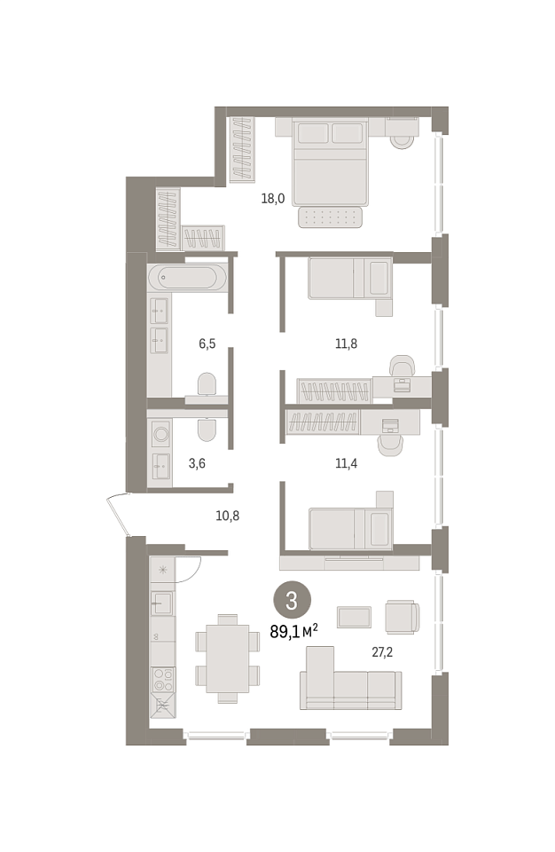 Количество комнат: 3, 89.12 кв.м.