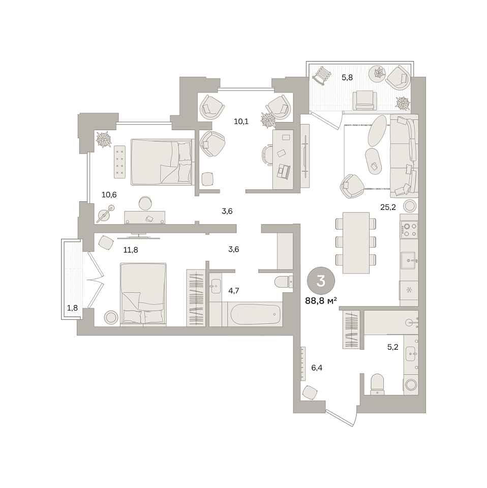 Купить новую трехкомнатную квартиру 89.33 м² на 10/25 этаже в ЖК «Квартал «МОНС»», г. Тюмень за 41120000 ₽ | Агентство недвижимости «Вплюсе.Топ» — Недвижимость России