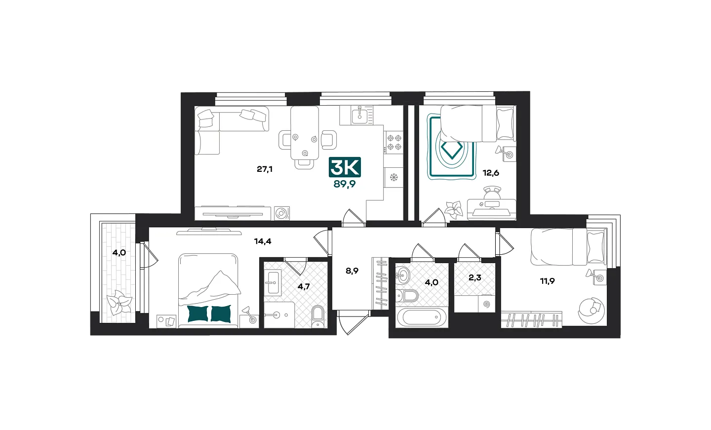 Купить новую трехкомнатную квартиру 89.9 м² на 5/23 этаже в ЖК «Добро», г. Тюмень за 14700000 ₽ | Агентство недвижимости «Вплюсе.Топ» — Недвижимость России