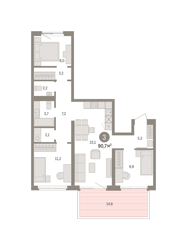 Купить новую трехкомнатную квартиру 90.7 м² на 2/8 этаже в ЖК «Южные кварталы», г. Тюмень за 15180000 ₽ | Агентство недвижимости «Вплюсе.Топ» — Недвижимость России