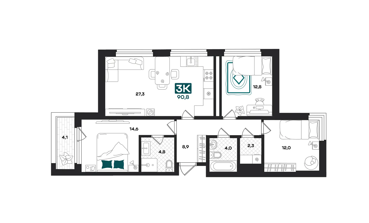 Купить новую трехкомнатную квартиру 90.8 м² на 11/23 этаже в ЖК «Добро», г. Тюмень за 15000000 ₽ | Агентство недвижимости «Вплюсе.Топ» — Недвижимость России