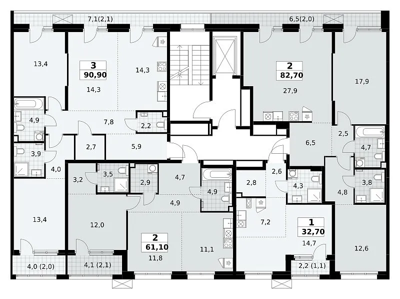 Общая площадь 90.9 м2