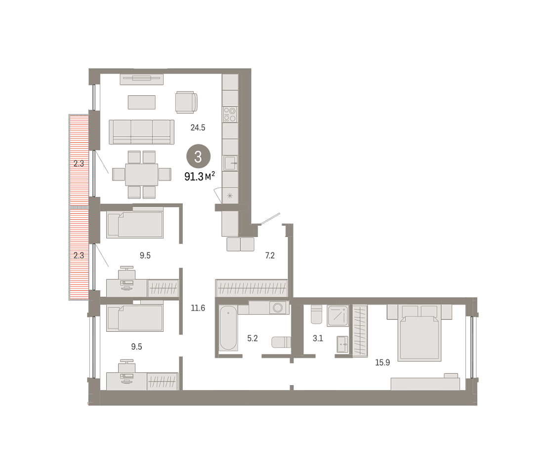 Купить новую трехкомнатную квартиру 91.25 м² на 2/8 этаже в ЖК «Октябрьский на Туре», г. Тюмень за 10430000 ₽ | Агентство недвижимости «Вплюсе.Топ» — Недвижимость России