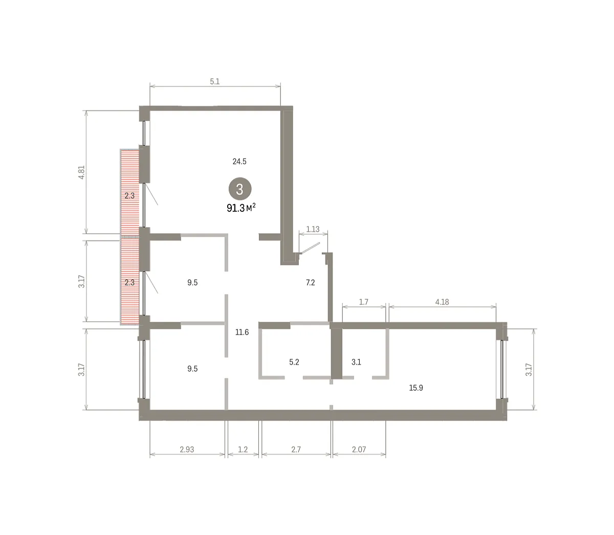 Площадь (общ/жил/кух), м2: 91.25/34.96/24.53