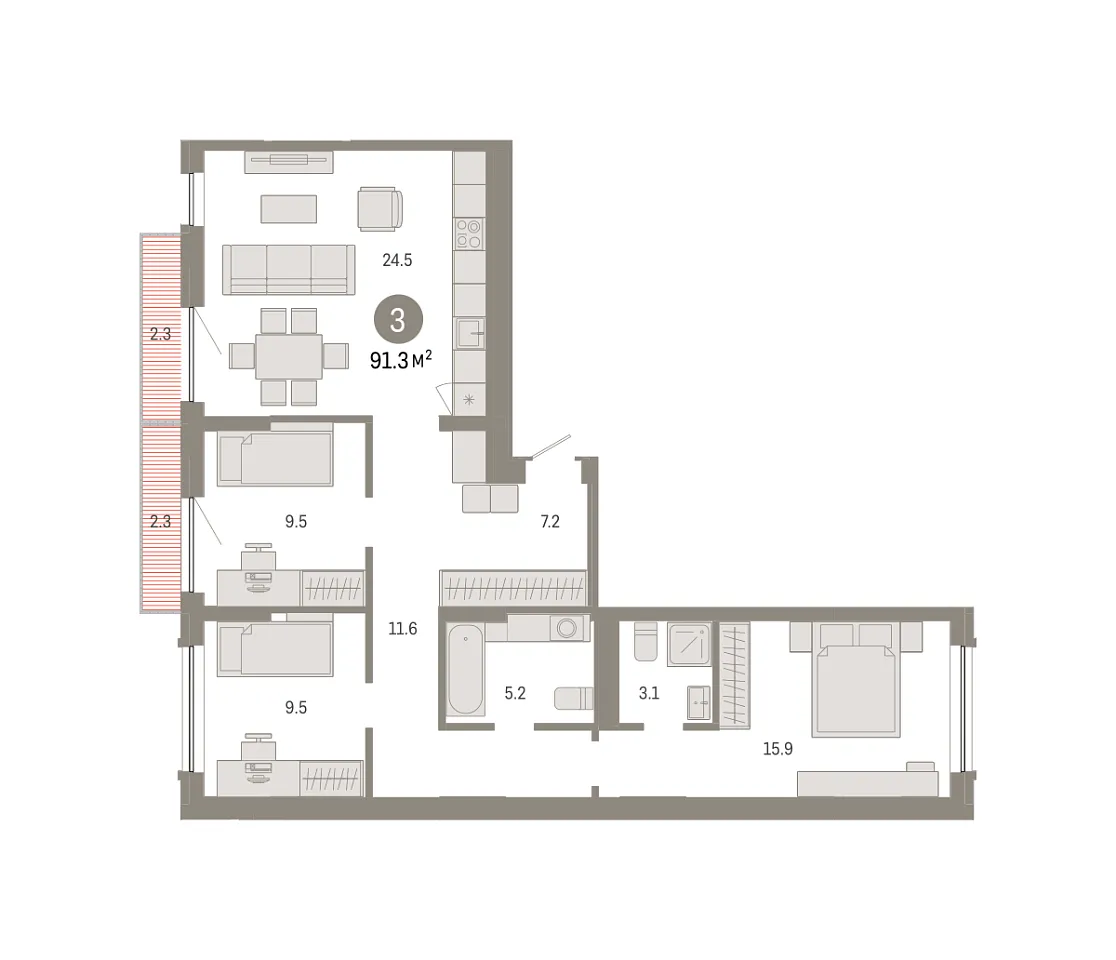 Купить новую трехкомнатную квартиру 91.25 м² на 6/8 этаже в ЖК «Октябрьский на Туре», г. Тюмень за 10060000 ₽ | Агентство недвижимости «Вплюсе.Топ» — Недвижимость России