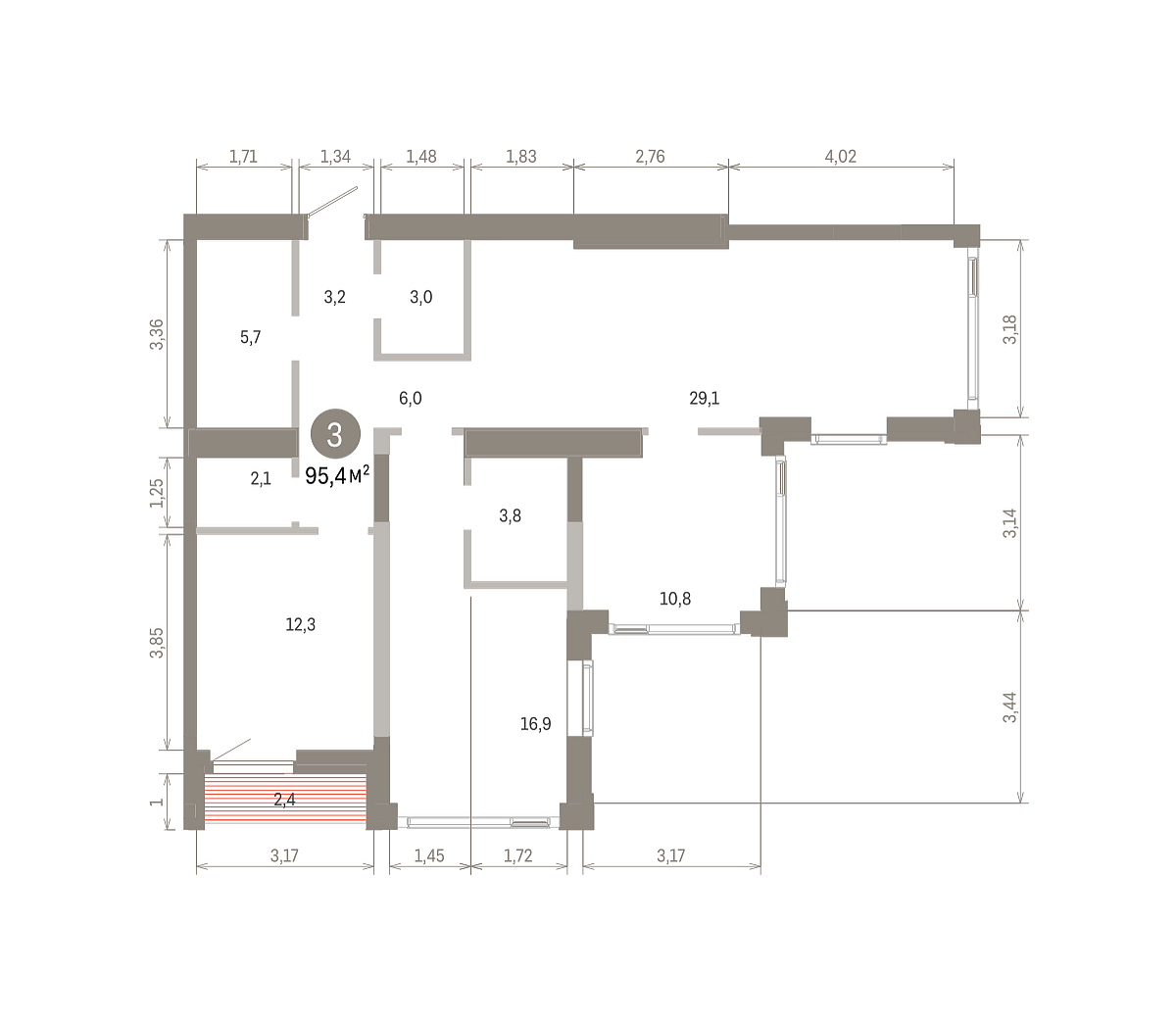 Количество комнат: 3, 91.93 кв.м.