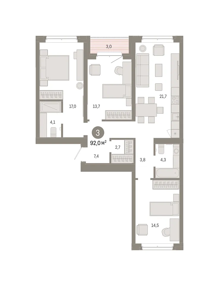 Купить новую трехкомнатную квартиру 92.02 м² на 4/7 этаже в ЖК «Кварталы «На Минской»», г. Тюмень за 15240000 ₽ | Агентство недвижимости «Вплюсе.Топ» — Недвижимость России
