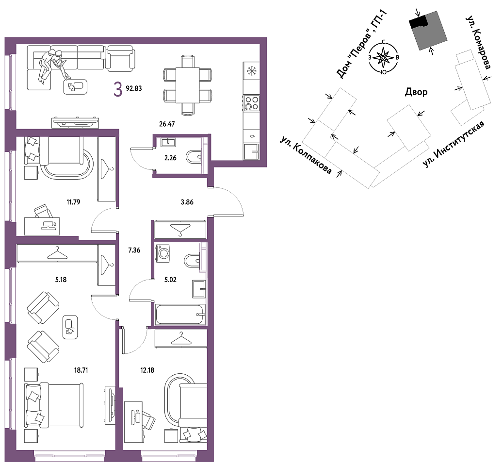 Купить новую трехкомнатную квартиру 92.83 м² на 15/25 этаже в ЖК «Страна.Парковая», г. Тюмень за 41786667 ₽ | Агентство недвижимости «Вплюсе.Топ» — Недвижимость России