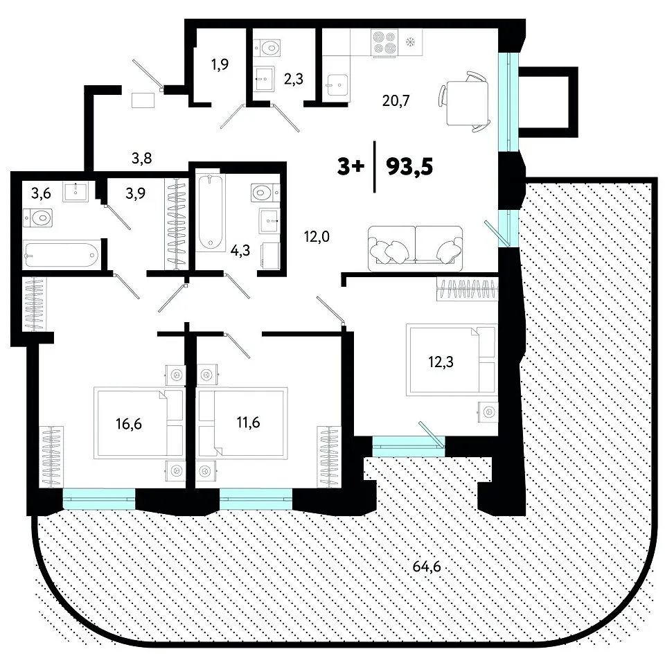 Купить новую трехкомнатную квартиру 93.51 м² на 1/4 этаже в ЖК «Кедровый берег», г. Тюмень за 11790000 ₽ | Агентство недвижимости «Вплюсе.Топ» — Недвижимость России