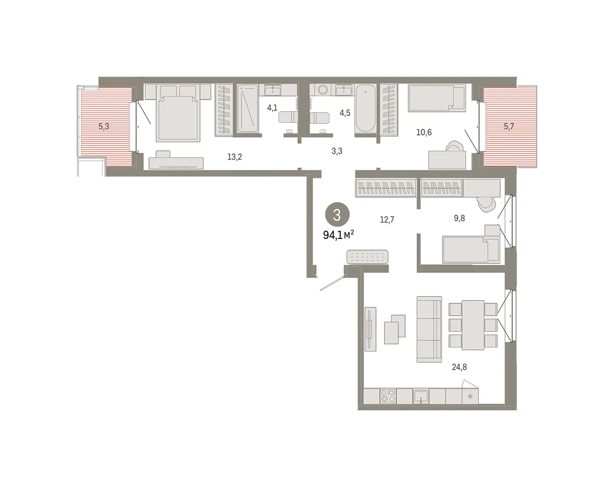Купить новую трехкомнатную квартиру 94.07 м² на 7/8 этаже в ЖК «Кварталы «На Минской»», г. Тюмень за 16010000 ₽ | Агентство недвижимости «Вплюсе.Топ» — Недвижимость России