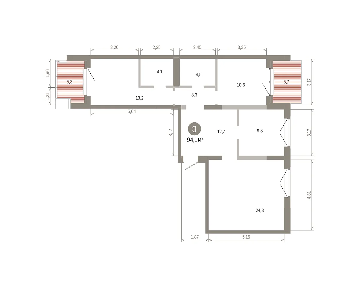 Количество комнат: 3, 94.07 кв.м.
