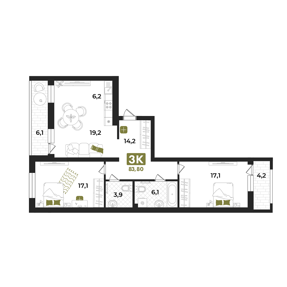 Купить новую трехкомнатную квартиру 94.1 м² на 2/15 этаже в ЖК «Опера», г. Тюмень за 14300000 ₽ | Агентство недвижимости «Вплюсе.Топ» — Недвижимость России