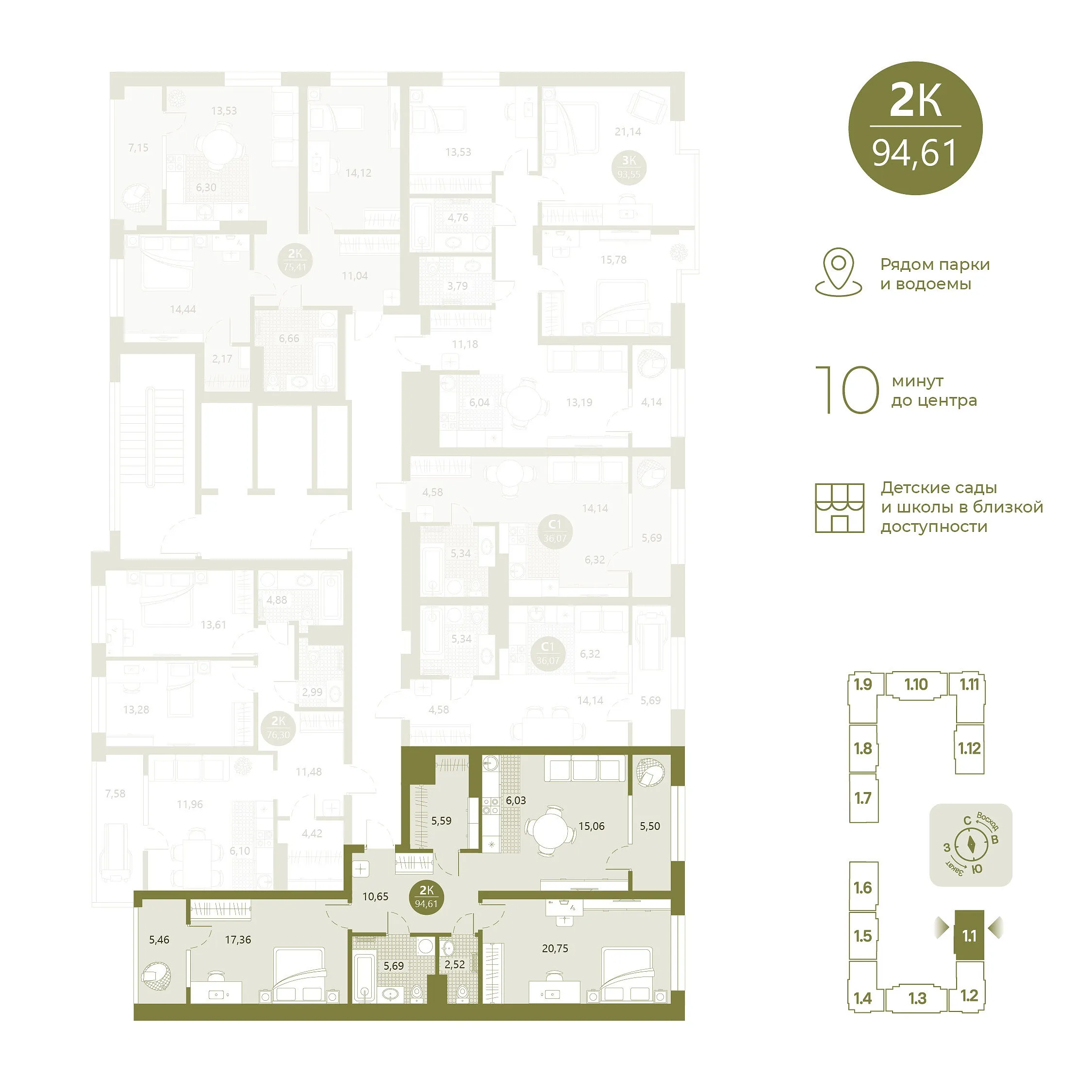 Количество комнат: 3, 94.2 кв.м.