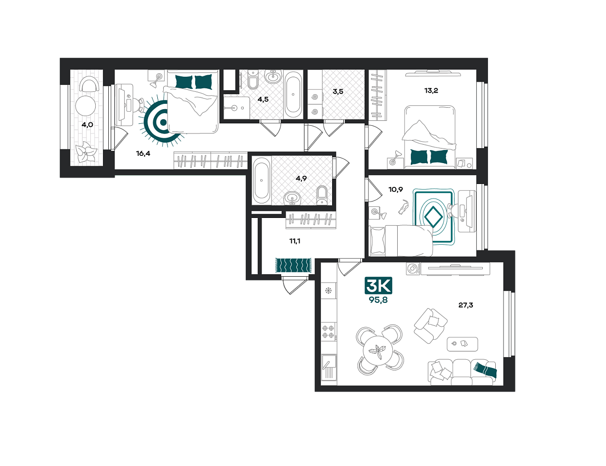 Купить новую трехкомнатную квартиру 95.8 м² на 2/23 этаже в ЖК «Добро», г. Тюмень за 15900000 ₽ | Агентство недвижимости «Вплюсе.Топ» — Недвижимость России