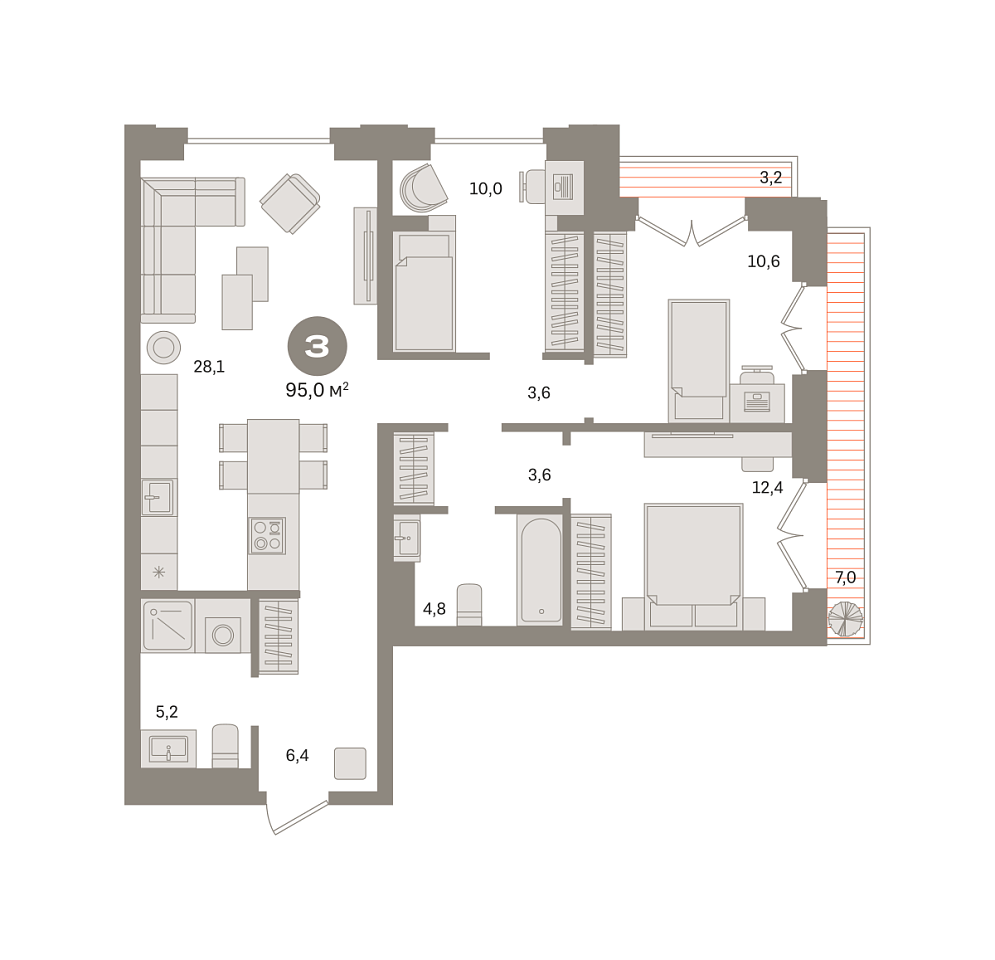 Купить новую трехкомнатную квартиру 95 м² на 7/25 этаже в ЖК «Квартал «МОНС»», г. Тюмень за 39000000 ₽ | Агентство недвижимости «Вплюсе.Топ» — Недвижимость России