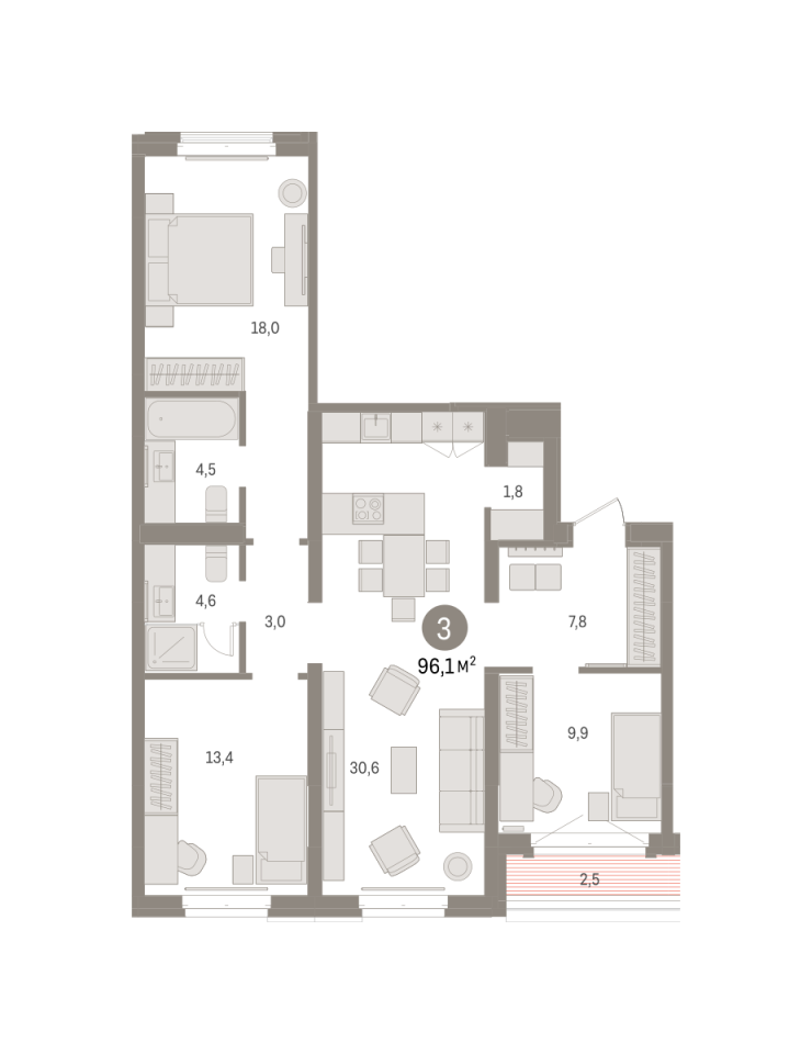 Купить новую трехкомнатную квартиру 96.11 м² на 4/7 этаже в ЖК «Кварталы «На Минской»», г. Тюмень за 17470000 ₽ | Агентство недвижимости «Вплюсе.Топ» — Агентство недвижимости "Вплюсе.Топ"