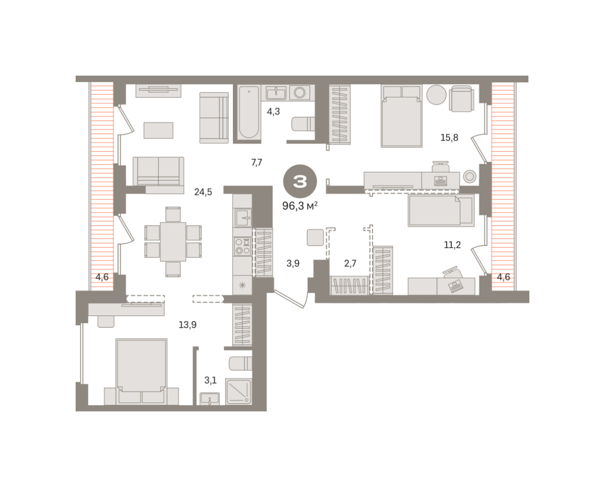Купить новую трехкомнатную квартиру 96.25 м² на 8/9 этаже в ЖК «Первый квартал», г. Тюмень за 16120000 ₽ | Агентство недвижимости «Вплюсе.Топ» — Агентство недвижимости "Вплюсе.Топ"