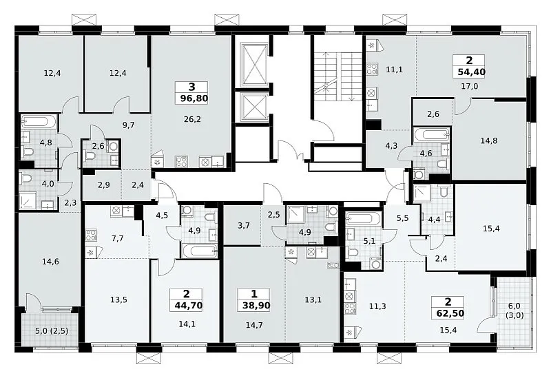 Площадь (общ/жил/кух), м2: 96.8/—/26.1