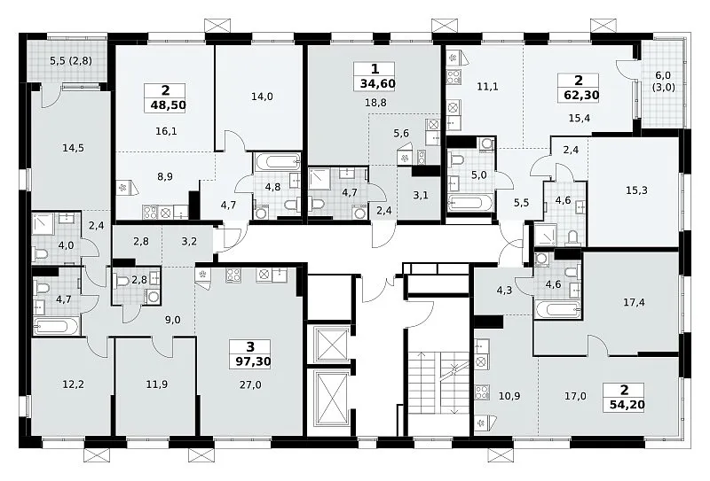 Общая площадь 97.3 м2