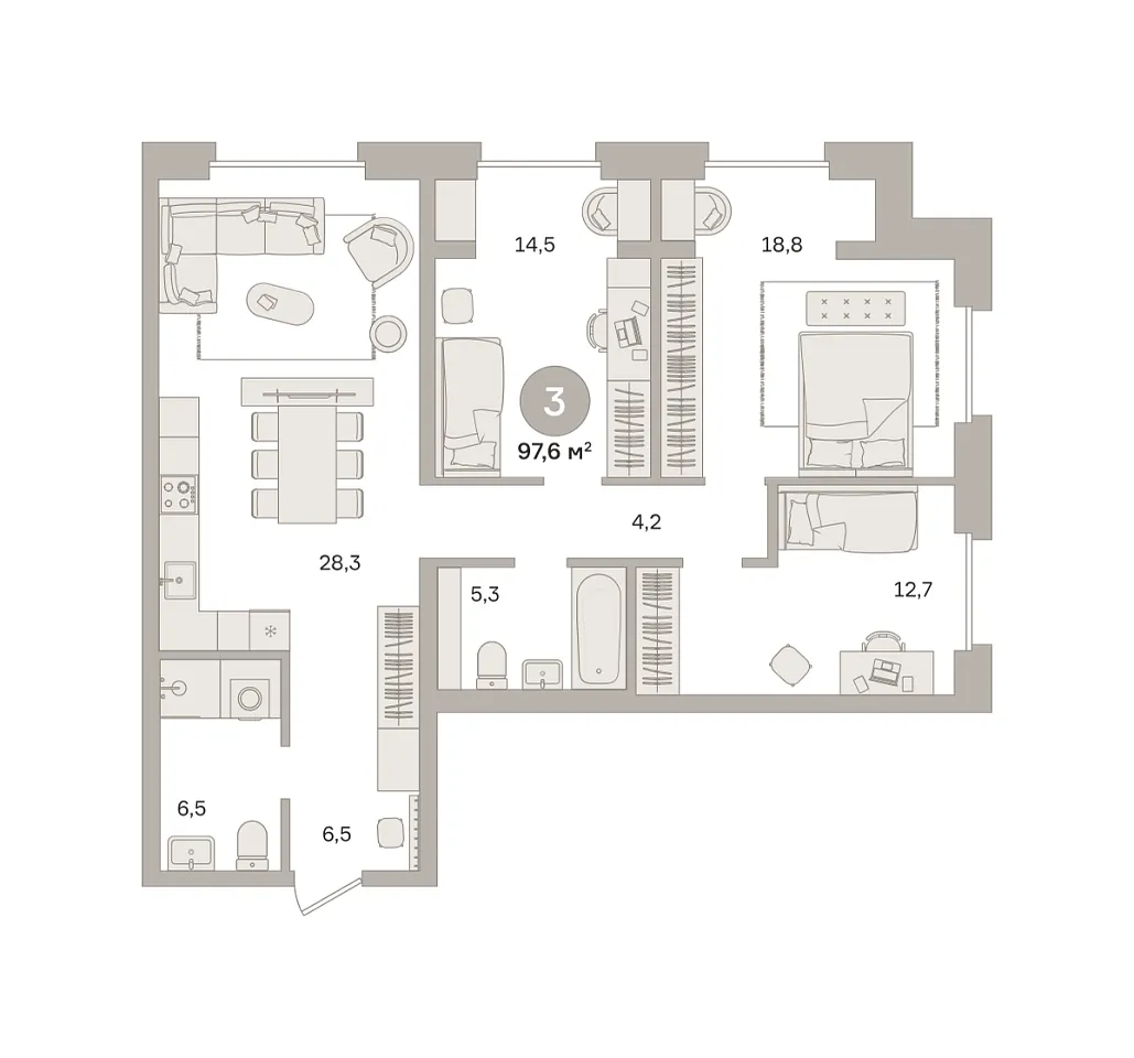 Купить новую трехкомнатную квартиру 97.59 м² на 4/25 этаже в ЖК «Квартал «МОНС»», г. Тюмень за 45860000 ₽ | Агентство недвижимости «Вплюсе.Топ» — Недвижимость России