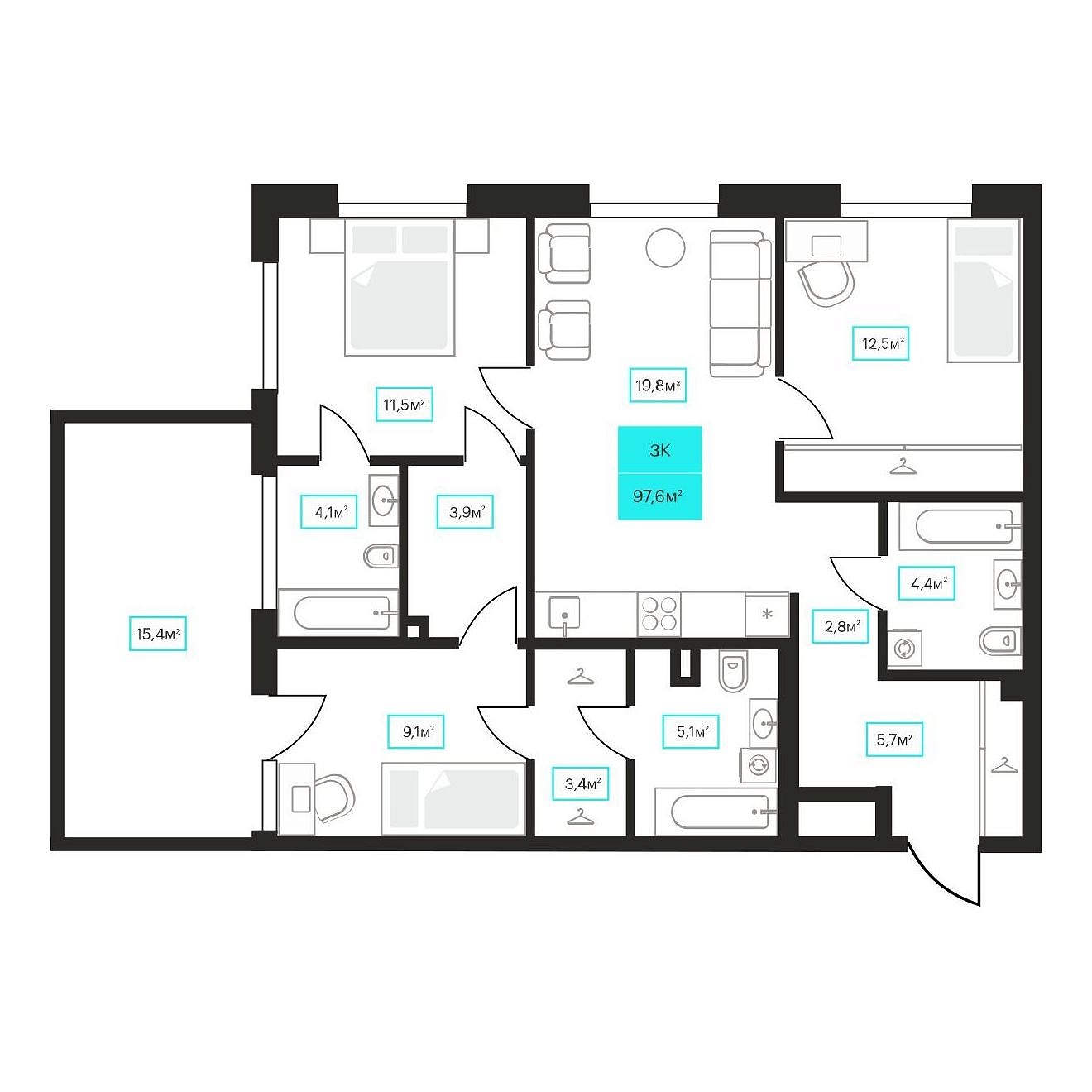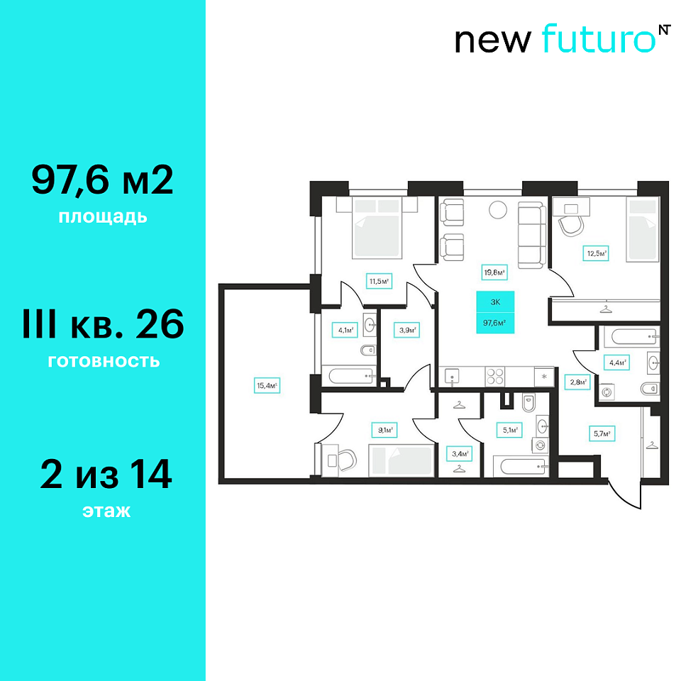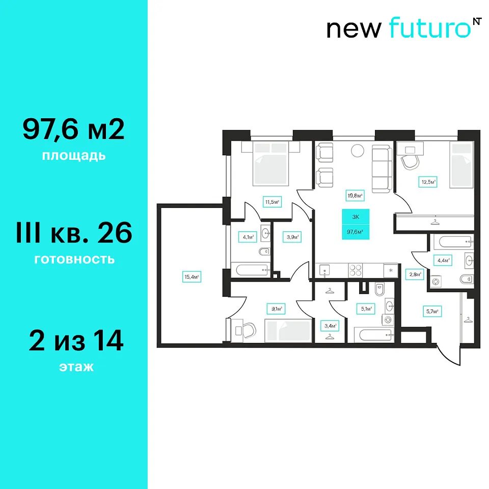 Купить новую трехкомнатную квартиру 97.6 м² на 2/23 этаже в ЖК «Futuro», г. Тюмень за 10820000 ₽ | Агентство недвижимости «Вплюсе.Топ» — Недвижимость России