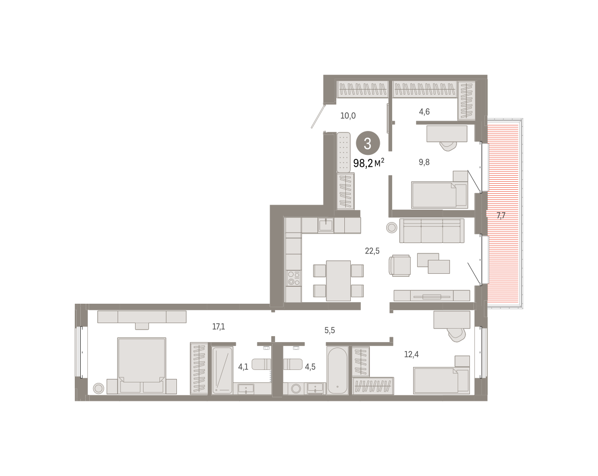 Купить новую трехкомнатную квартиру 98.17 м² на 5/7 этаже в ЖК «Кварталы «На Минской»», г. Тюмень за 15260000 ₽ | Агентство недвижимости «Вплюсе.Топ» — Агентство недвижимости "Вплюсе.Топ"