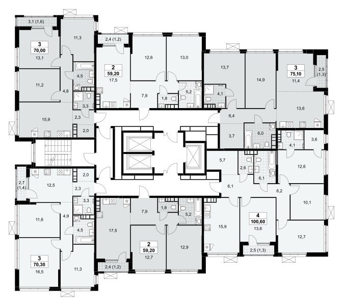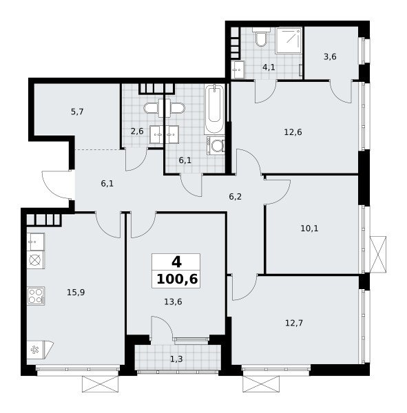 Площадь (общ/жил/кух), м2: 100.6/—/15.9