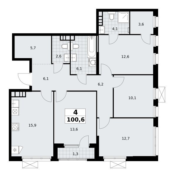 Площадь (общ/жил/кух), м2: 100.6/—/15.9