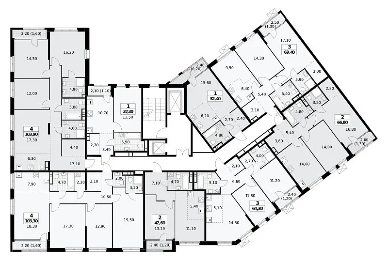 Площадь (общ/жил/кух), м2: 104.1/—/6.4