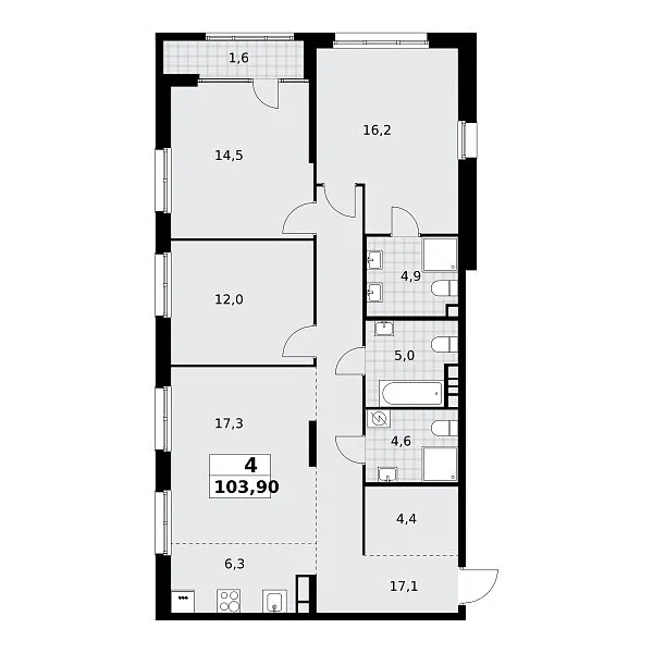 Количество комнат: 4, 103.9 кв.м.