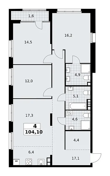 Количество комнат: 4, 104.1 кв.м.