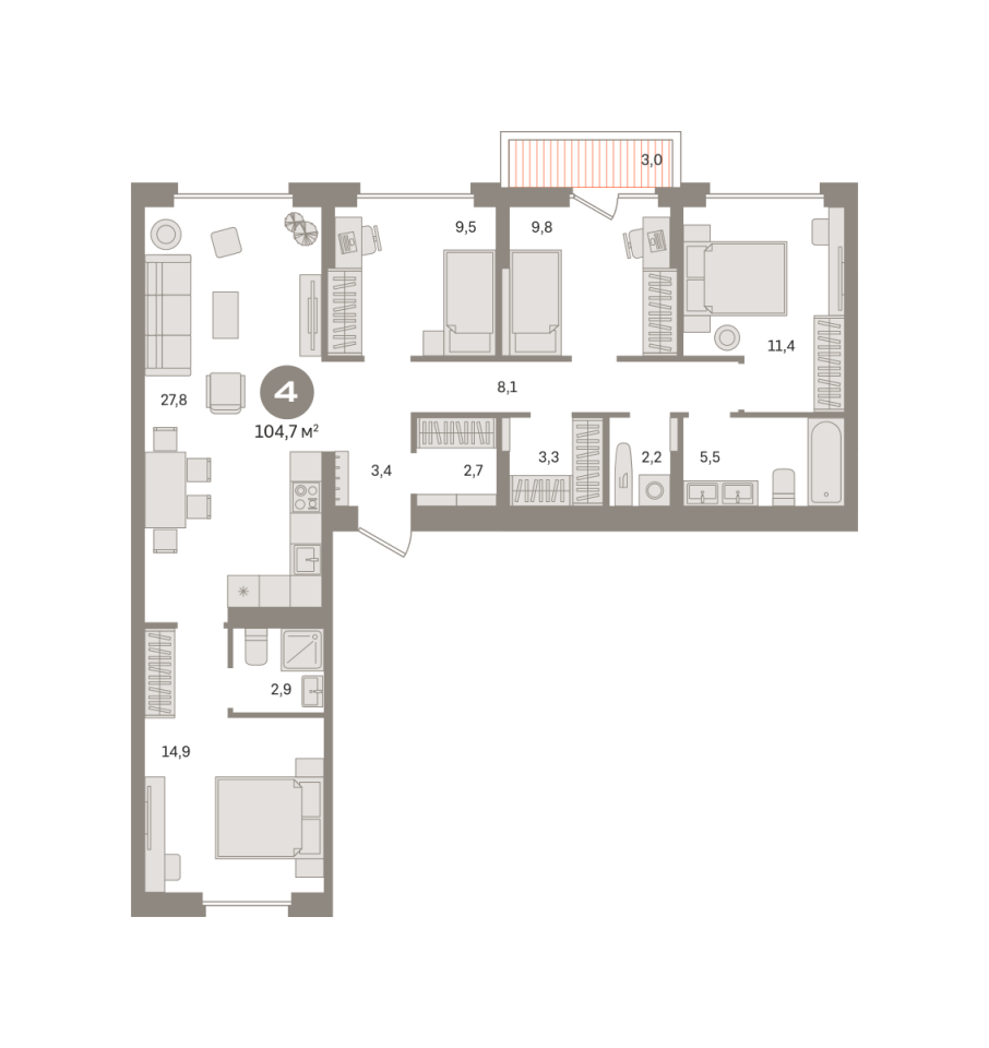 Купить новую четырехкомнатную квартиру 104.72 м² на 4/9 этаже в ЖК «Первый квартал», г. Тюмень за 16480000 ₽ | Агентство недвижимости «Вплюсе.Топ» — Агентство недвижимости "Вплюсе.Топ"