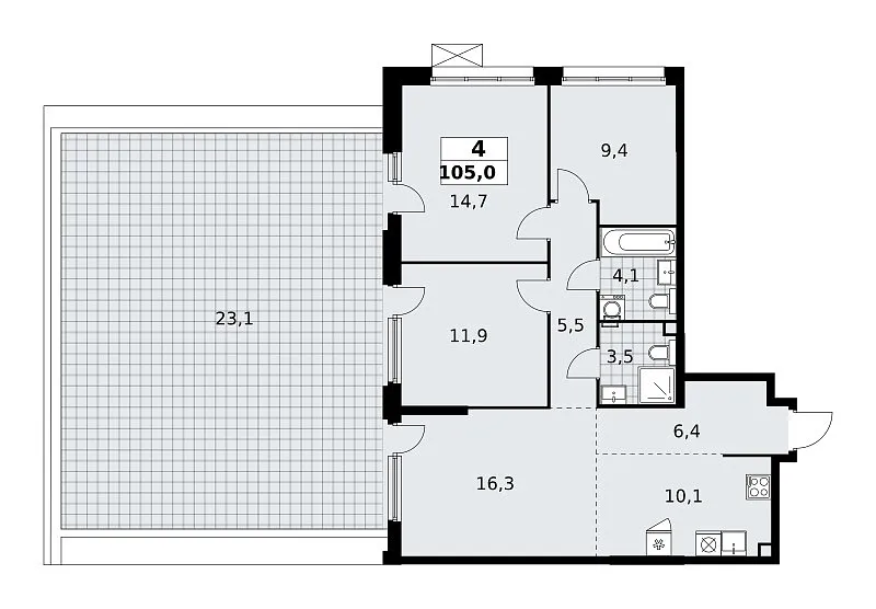 Количество комнат: 4, 105 кв.м.