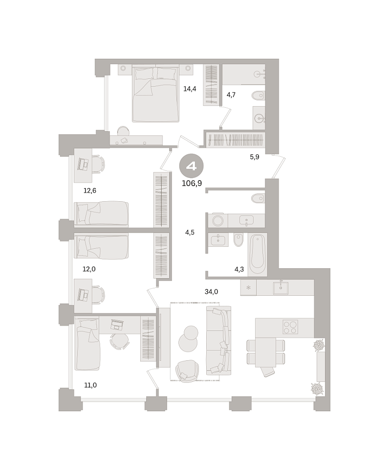 Купить новую четырехкомнатную квартиру 106.9 м² на 2/8 этаже в ЖК «Дом «А»», г. Тюмень за 70310000 ₽ | Агентство недвижимости «Вплюсе.Топ» — Недвижимость России