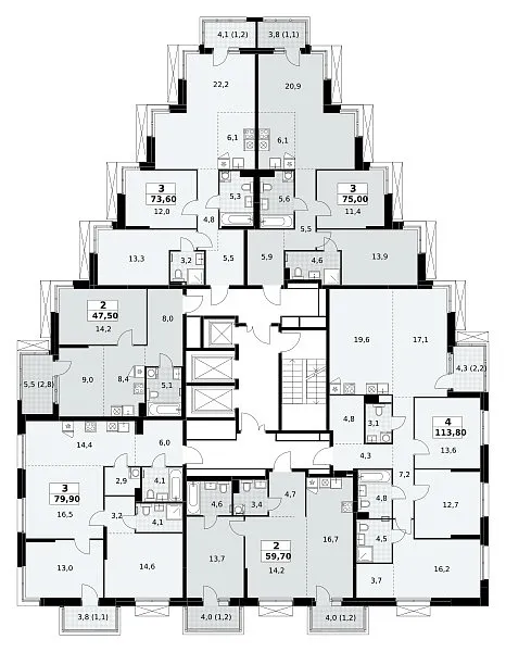 Площадь (общ/жил/кух), м2: 113.8/—/19.6