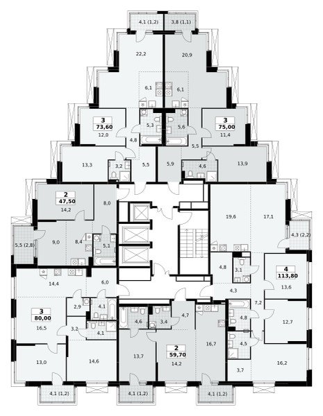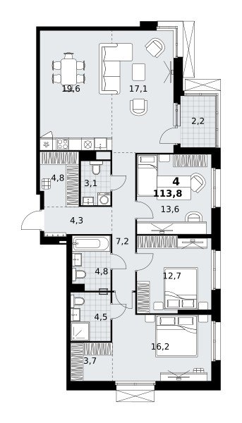 Площадь (общ/жил/кух), м2: 113.7/—/19.6