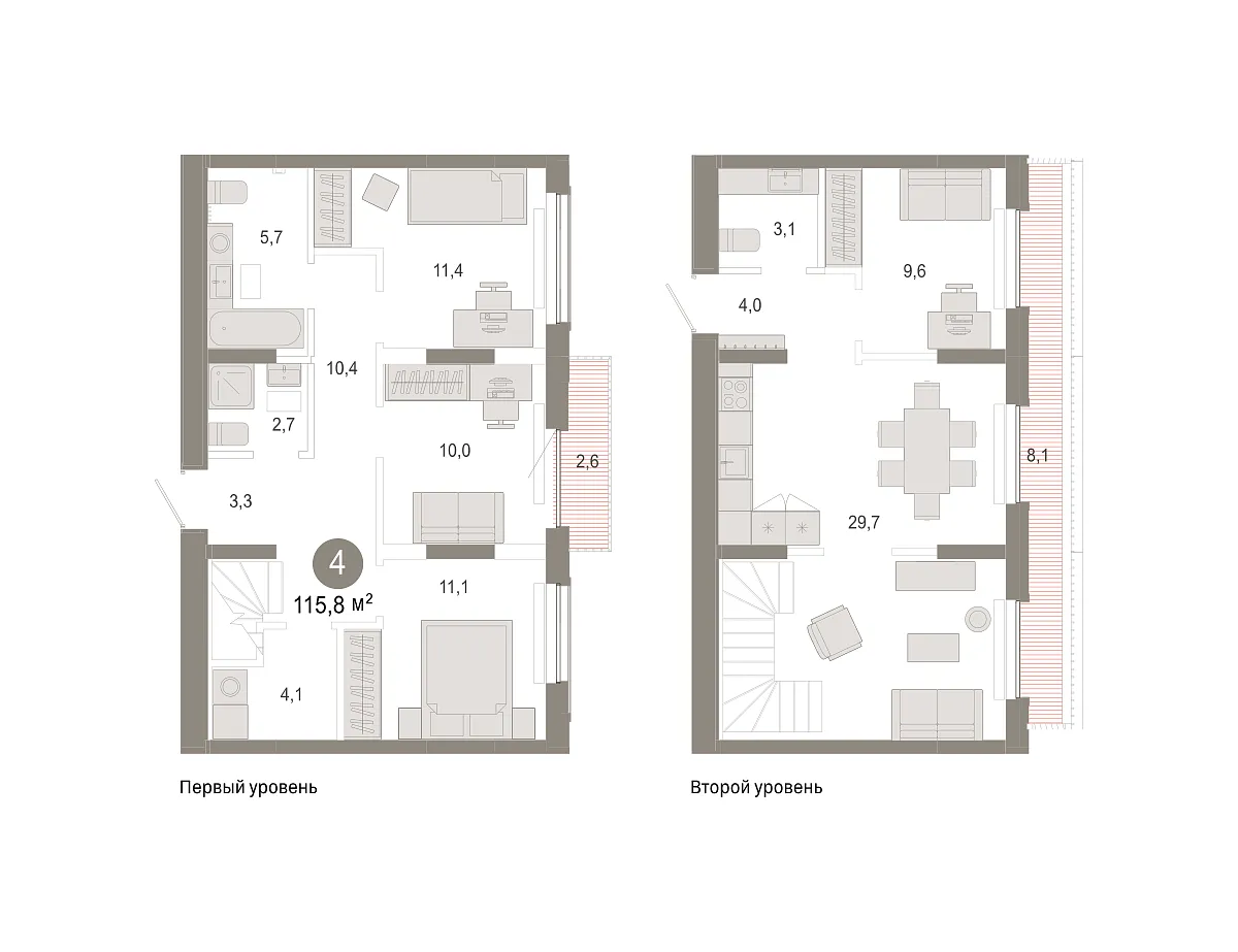 Количество комнат: 4, 115.76 кв.м.