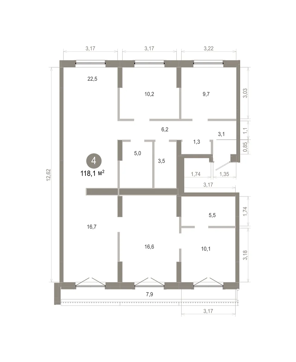 Площадь (общ/жил/кух), м2: 118.2/47.9/33.57