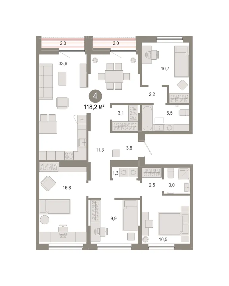 Количество комнат: 4, 118.2 кв.м.