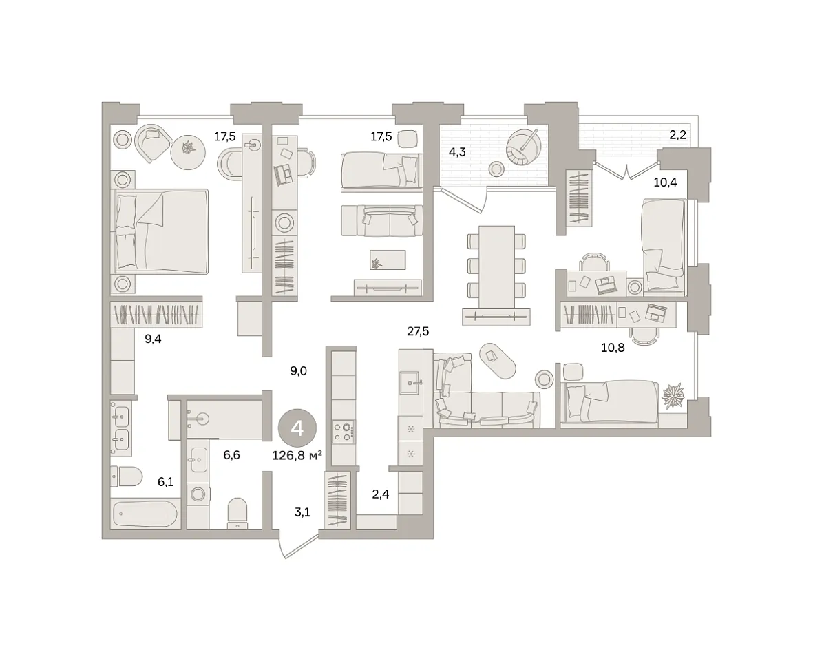 Купить новую четырехкомнатную квартиру 126.81 м² на 4/27 этаже в ЖК «Квартал «МОНС»», г. Тюмень за 46400000 ₽ | Агентство недвижимости «Вплюсе.Топ» — Недвижимость России