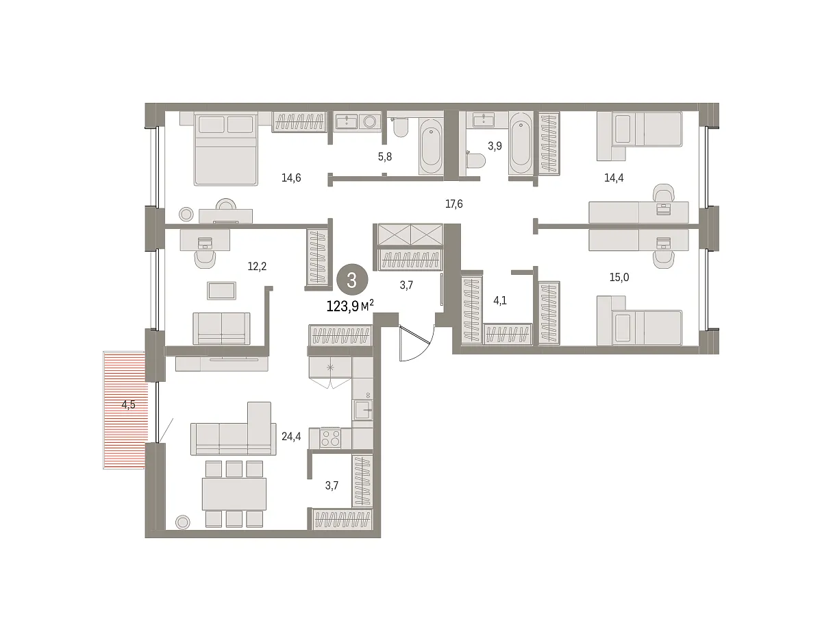 Купить новую четырехкомнатную квартиру 127.62 м² на 3/10 этаже в ЖК «Северный ветер», г. Тюмень за 42980000 ₽ | Агентство недвижимости «Вплюсе.Топ» — Недвижимость России