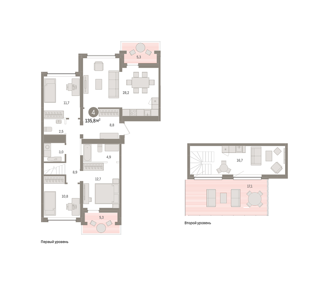 Количество комнат: 4, 135.8 кв.м.