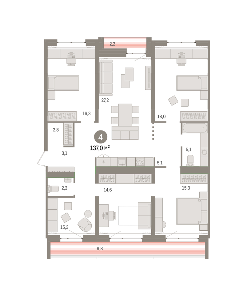 Площадь (общ/жил/кух), м2: 136.8/55.17/33.86