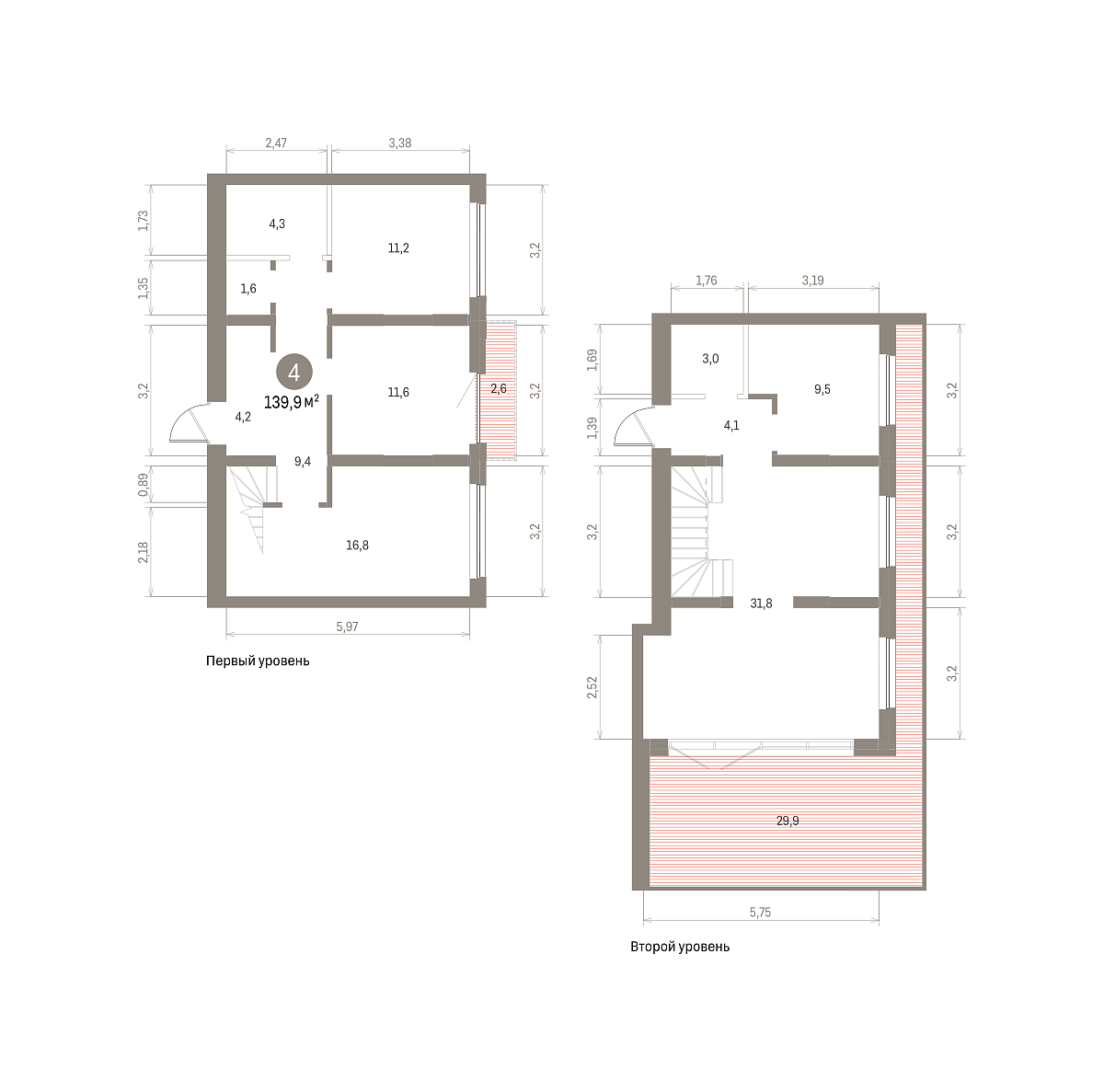 Площадь (общ/жил/кух), м2: 138.82/33.8/31.28