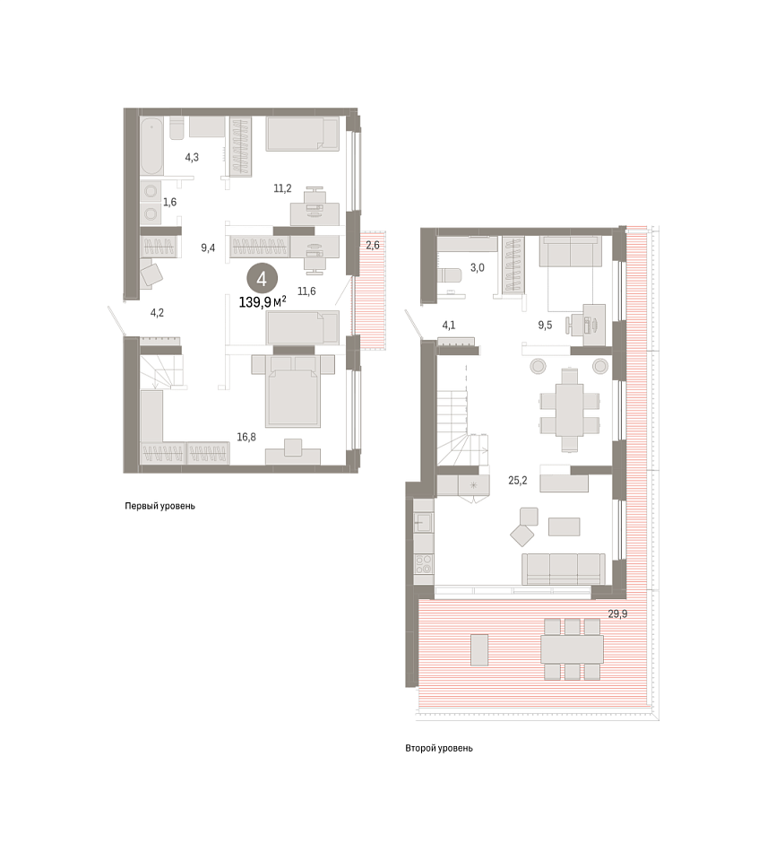 Площадь (общ/жил/кух), м2: 140.93/42.57/43.35