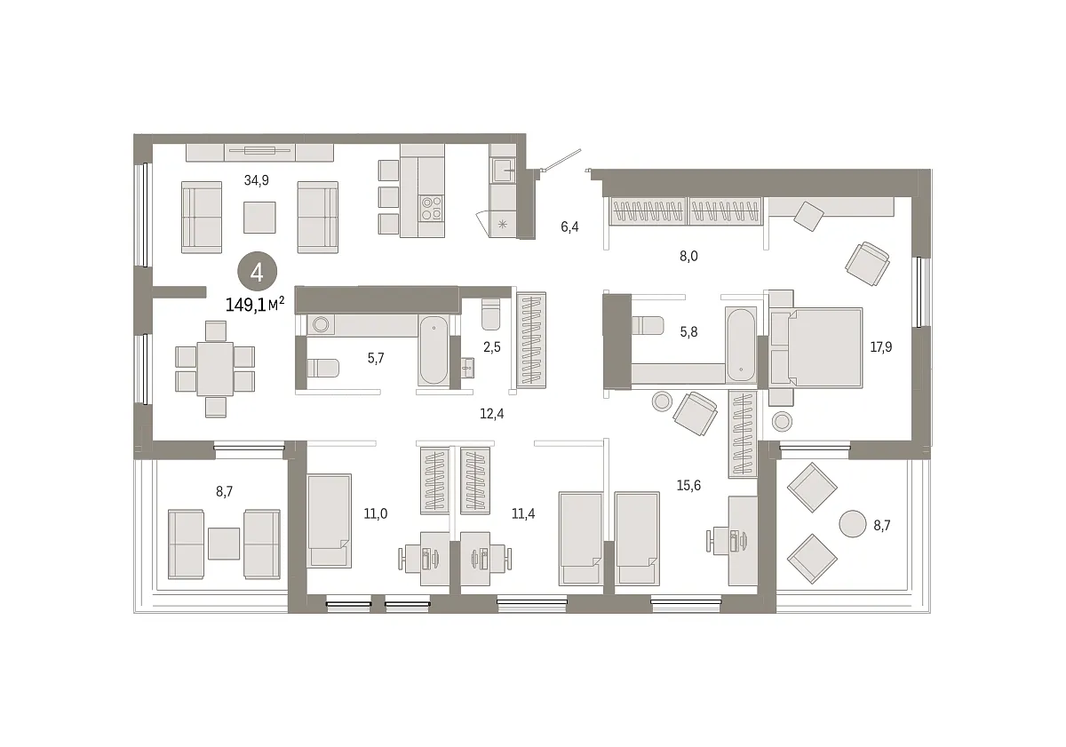 Количество комнат: 4, 149.07 кв.м.