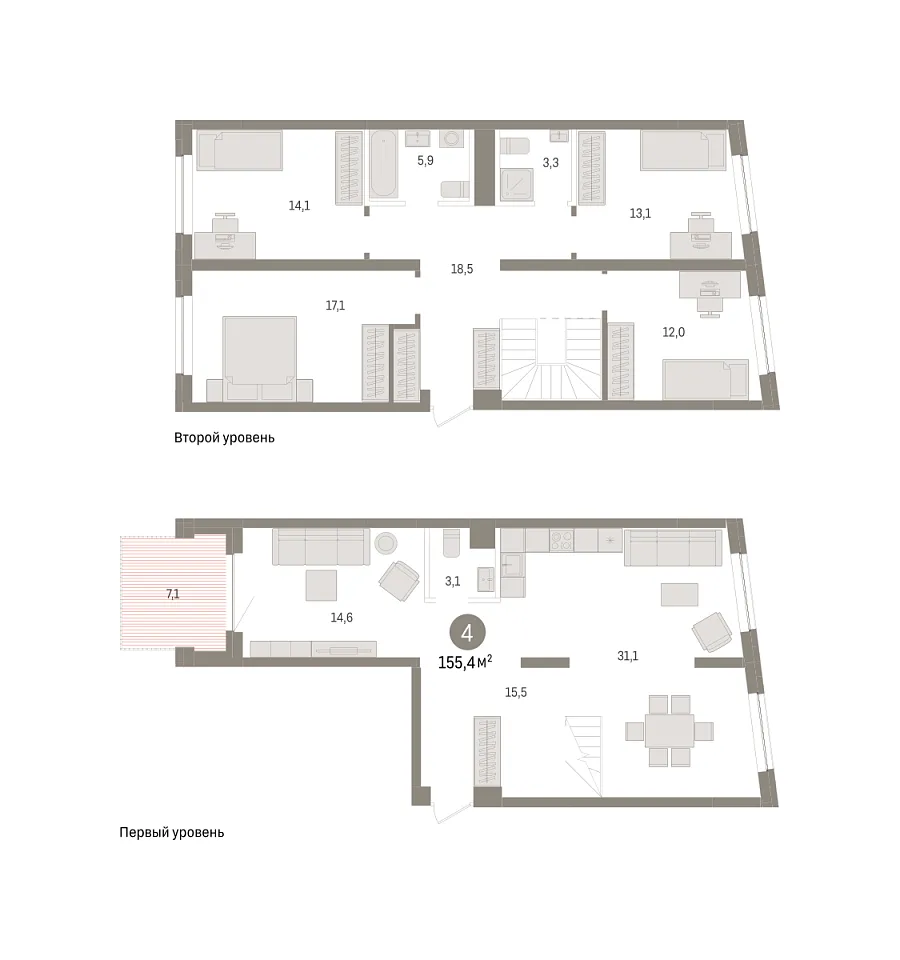 Количество комнат: 4, 155.4 кв.м.