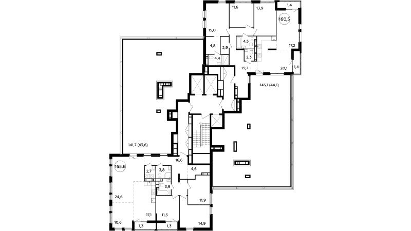 Площадь (общ/жил/кух), м2: 165.8/—/—